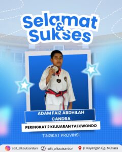Siswa SDS Al Kautsar berhasil meraih prestasi gemilang dalam ajang Kejuaraan Taekwondo Riau Challenge 2025 yang diselenggarakan di Gor Tribuana Kota Pekanbaru pada pada tanggal 01-03 Agustus 2025. SDS Al Kautsar berhasil membawa pulang 3 mendali emas dan 1 mendali perak.